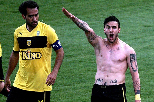 Pero existen casos mucho más extraños. Por ejemplo, a veces, sin saber ni cómo ni porqué, a uno le brota sin querer un cabrón. Le pasó hace unos días al futbolista griego Giorgos Katidis. El joven estaba tranquilamente festejando la victoria de su equipo el AEK Atenas, cuando de repente sufrió una especie de erección imparable del brazo derecho al tiempo que los dedos de su mano se tensaban conformando un perfecto saludo romano. Y es que a Katidis, con la misma inocencia con que a otros le sale urticaria en primavera, le acababa de salir un fascista sin querer.